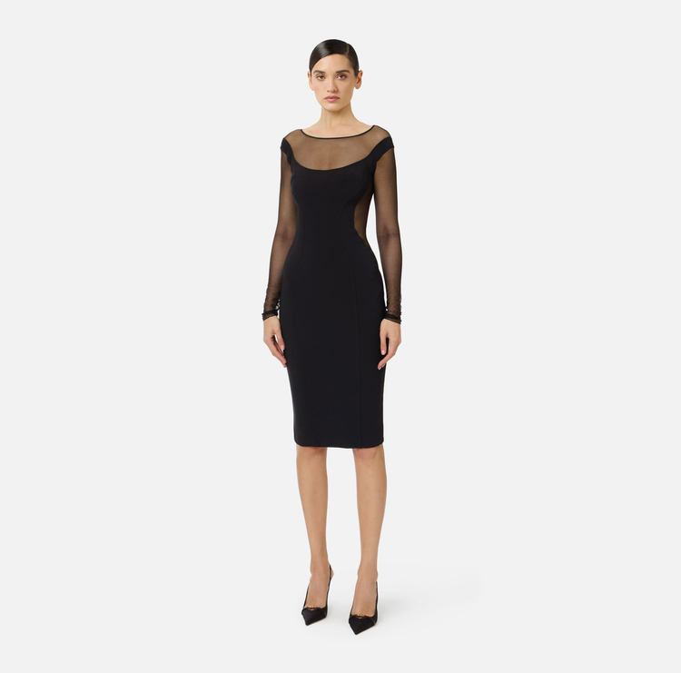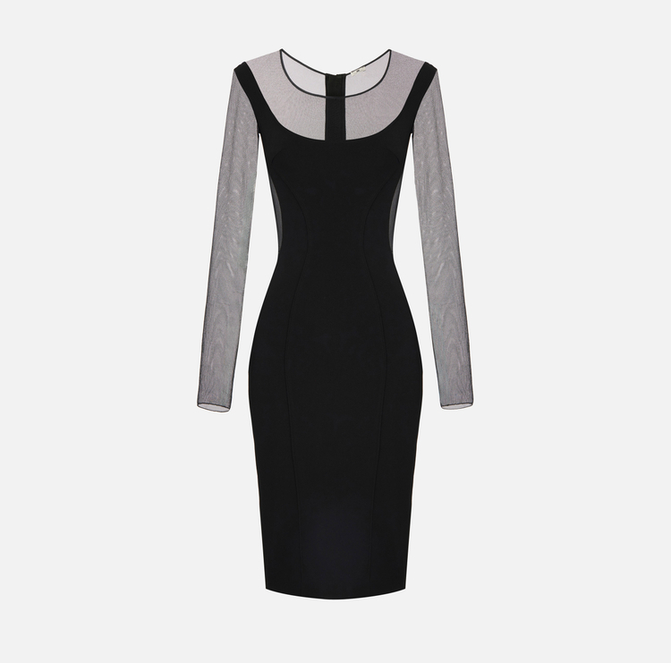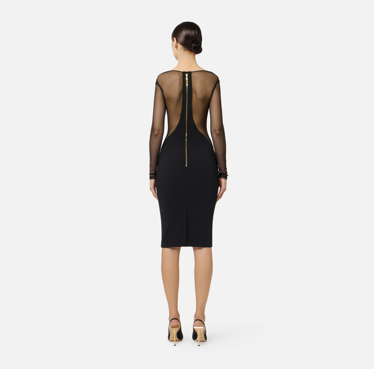 Abito in crêpe leggero e tulle con cut-out