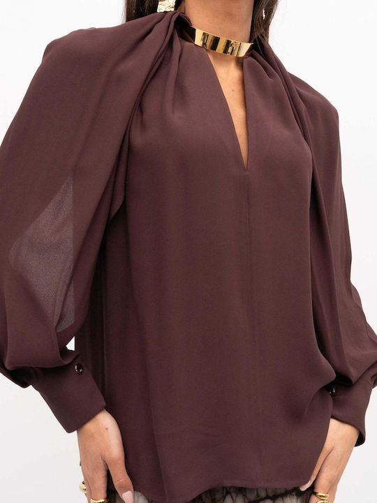 Camicia in georgette di viscosa con dettaglio gioiello