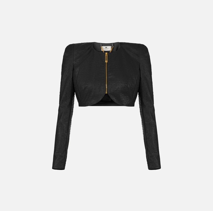 Giacca in ecopelle con stampa struzzo