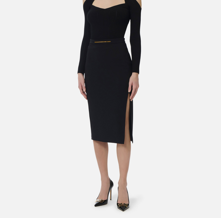 Gonna leggera in crêpe con placca gioiello
