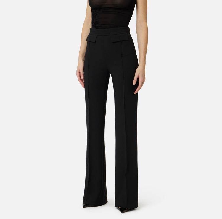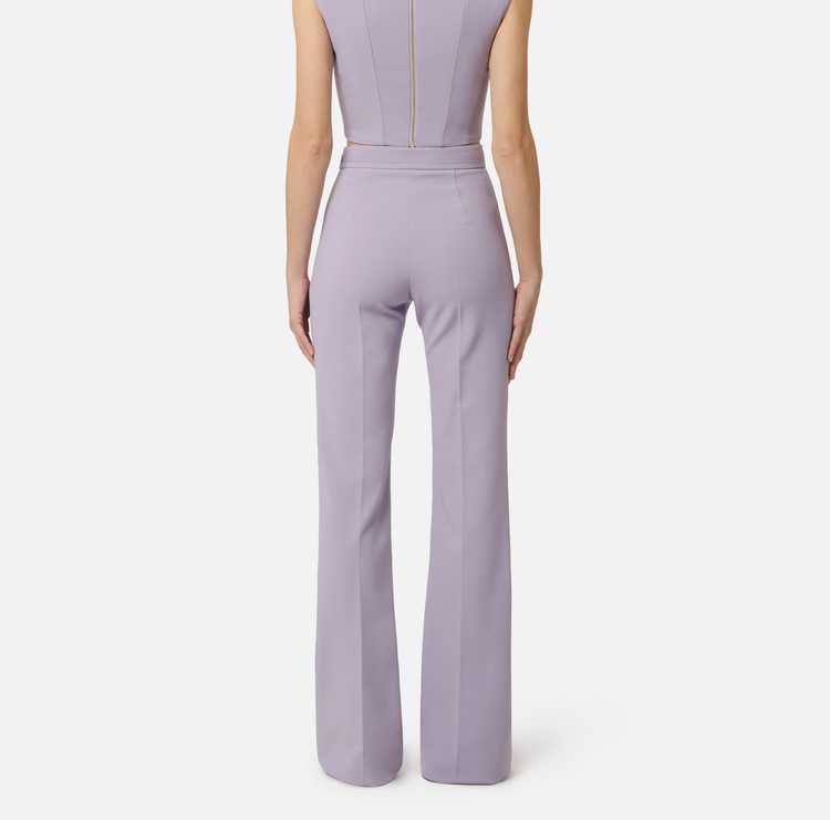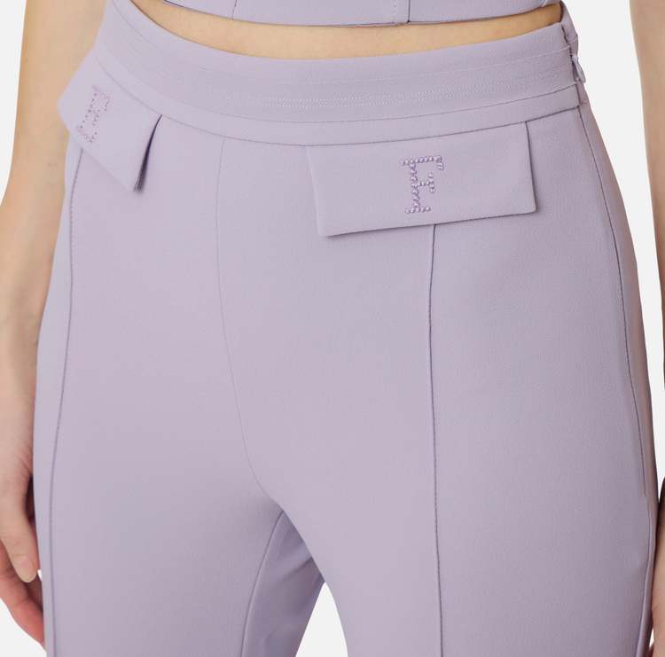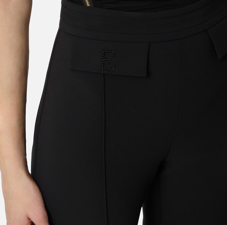 Pantaloni in doppio crêpe stretch con logo ricamato